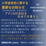 2025年7月3日 / 最終更新日時 : 2025年7月4日 InternationalAJ お知らせ 入学金金改定 2025年9月1日から、アメリカのパスポートをお持ちの方以外は、学費が値上がり致します。 2025年9月以降の入学を予定されている方は、条件次第で現行の学費が適用されます。 (2025年8月31日までに準備講座をお申し込 […]
